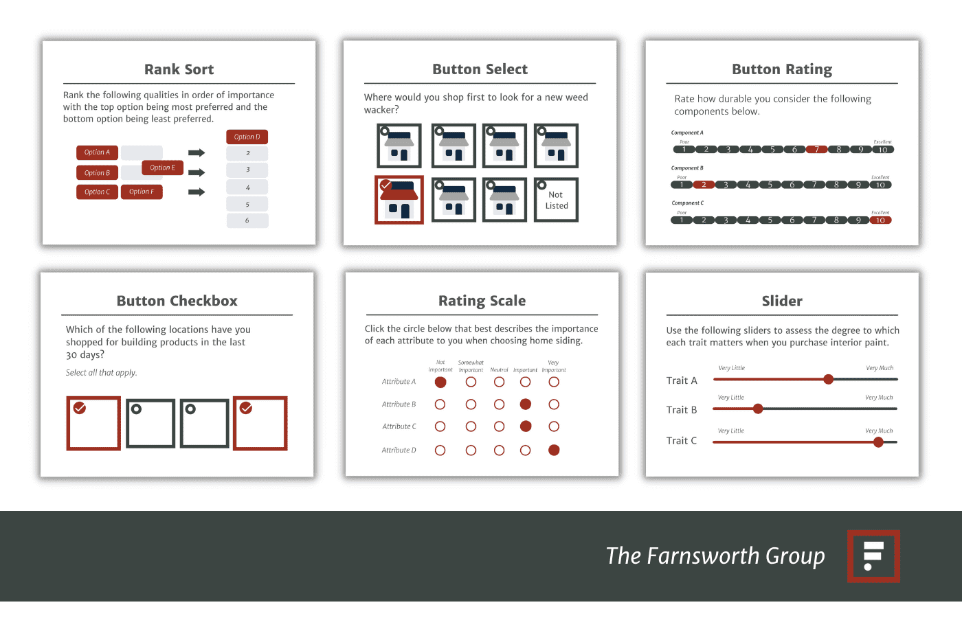 If you’re testing multiple building products in a sequential manner, here are the types of questions to include in your survey:
